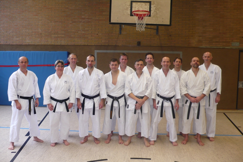 Mit 13 DAN-Trägern/Trägerinnen vom 3. bis zum 6. DAN war das erste Training der Führungsebene im BlackBelt Projekt gut besucht. Inhaltlich wurden die Kata Goju Shiho Sho und Unsu trainiert. Das Thema Anforderungen an höhere DAN-Prüfungen war das Kernthema im theoretischen Teil. Dabei wurde das Konzept einer weiteren Gruppe des BlackBelt Projekts vorgestellt, die sich bereits jetzt auf ihre Prüfungen zum 3. DAN im Sonmer 2012 vorbereitet. Diese Konzept erfasst unter anderem objektiv messbare Kriterien für die motorischen Grundeigenschaften Ausdauer und Kraft.