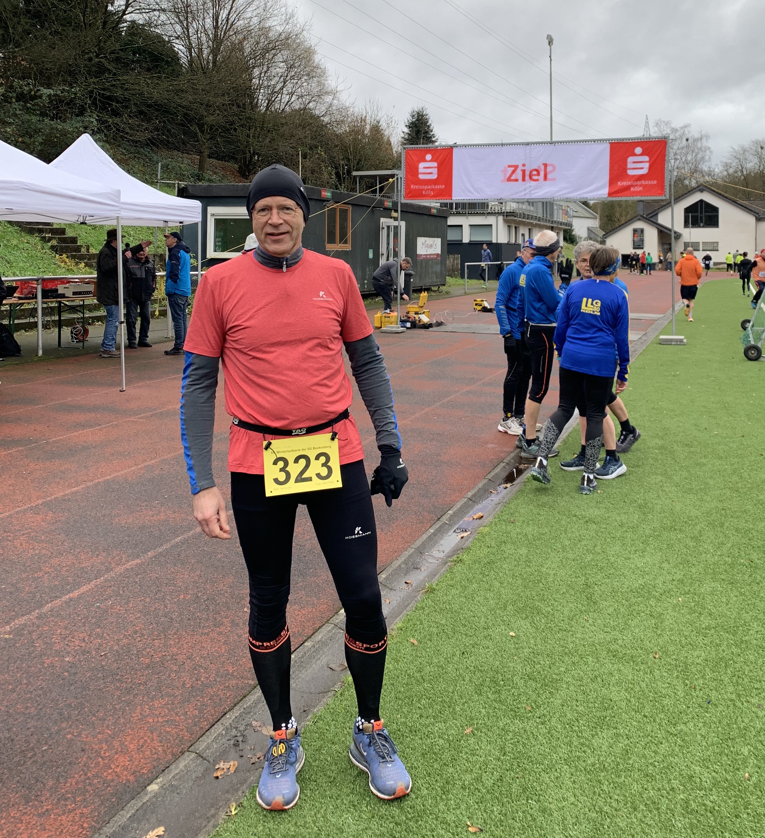 Der zweite Lauf am Bockenberg fand am 07.12.2024 statt. Nachdem es in den letzten Tagen und auch am Lauftag vormittags noch viel geregnet hatte, konnten wir bei angenehmen 8 Grad trocken loslaufen. Ich bin den Lauf mit einem 5:15er Schnitt angelaufen und konnte das Tempo die ersten Kilometer gut durchhalten, obwohl die Waldstrecke zum Teil sehr matschig war. Auf dem steilen Stück hinter Haus Hardt musste ich das Tempo etwas rausnehmen, um nicht alle Körner zu verbrauchen. Bergab und im Zielbereich konnte ich noch ein paar Plätze gut machen. Ich bin bei 56:42 nach 10,1 km im Ziel angekommen und habe meine Zeit aus dem Vorjahr um fast zwei Minuten verbessert. Damit habe ich das Ziel doppelt erreicht ;-) Dazu kam im Ziel sogar kurz die Sonne raus. Also ein perfekter Tag.