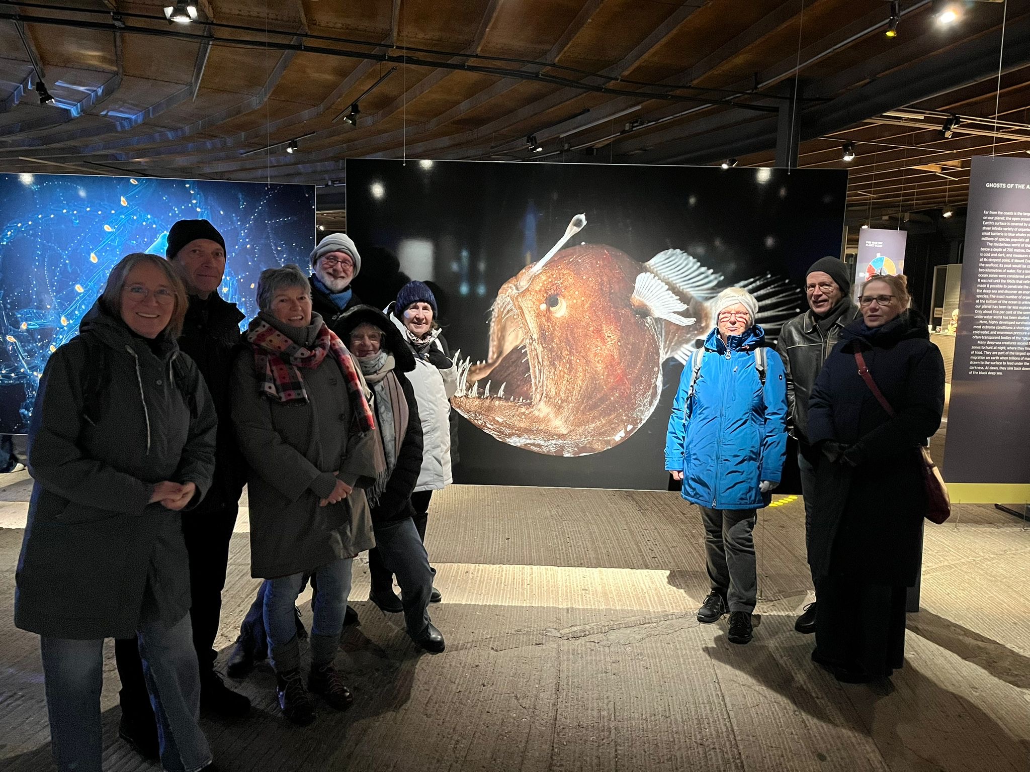Der erste Ausflug in 2025 führte uns nach Oberhausen in den Gasometer. Dort wird seit Anfang 2024 die Ausstellung Planet Ozean präsentiert. Nachdem wir trotz Schnee und Glätte gut in Oberhausen angekommen waren, konnten wir aufgrund der frostigen Temperaturen die Ausstellung fast alleine genießen. Nach einer Stunde Führung u.a. mit den Themen Tiefsee, Sex und Klimaveränderung (also für jeden etwas dabei) haben wir in einer Ton-Performance Unterwassergeräuschen gelauscht. Danach waren alle froh in ein wärmendes Restaurant weiter zu gehen.