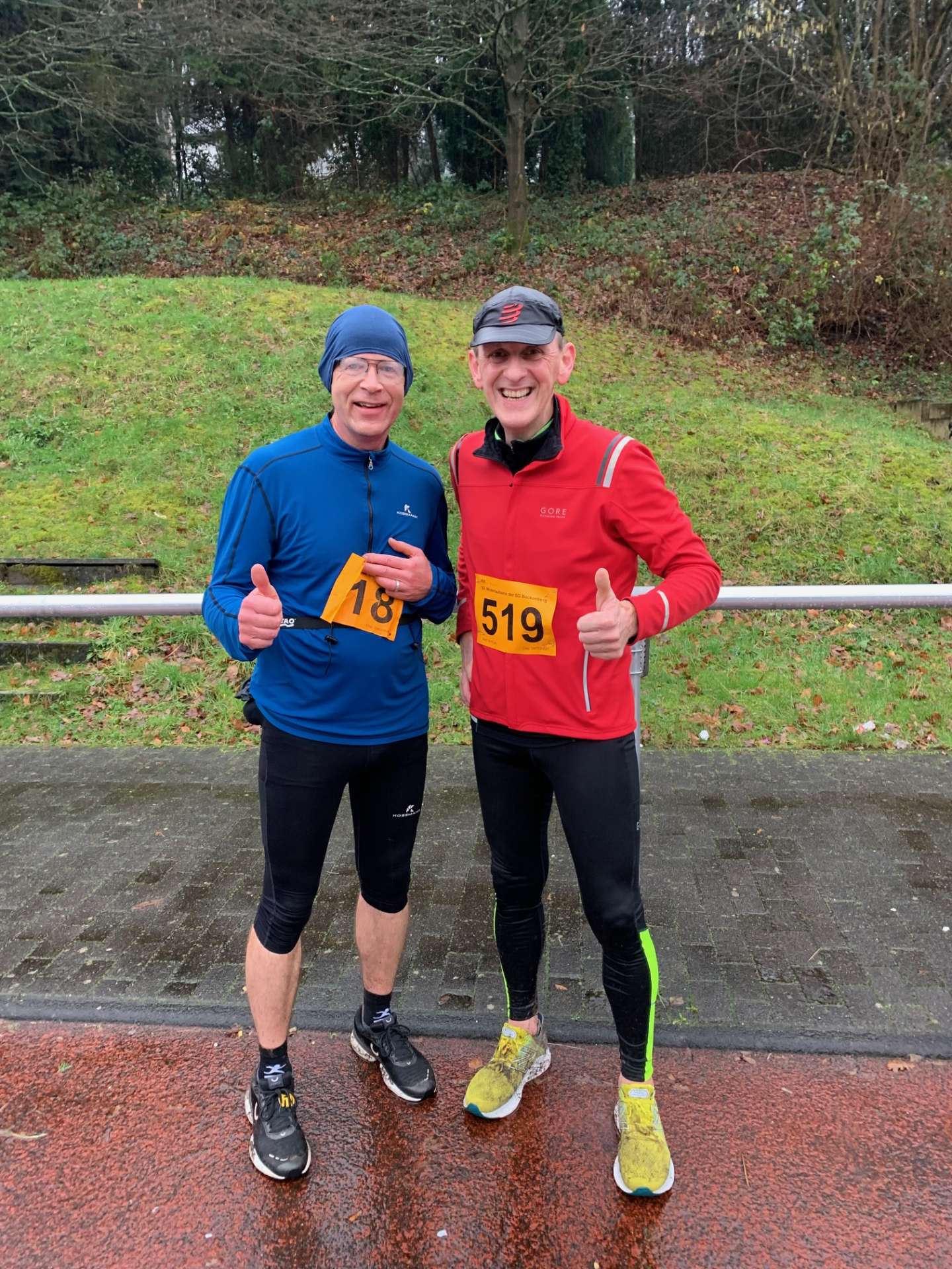 Dieses Jahr bin ich zum Warmlaufen die knapp 2 Kilometer von Eichen nach Biesfeld gelaufen. So bin ich schön warm (trotz Nieselregen) zum